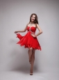 70 Red Empire Sweetheart Neck Mini-length Chiffon Beading Prom / Homecoming Dress