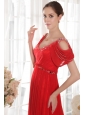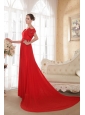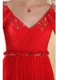 Home >  Prom Dresses >  Cheap Prom Dresses > Red Empire V-neck Chapel Train Chiffon Beading Prom Dress