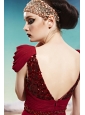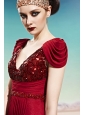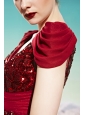 This sassy and flattering red prom dress is highlighted with v-line neckline and regular pleated cap sleeves.The bodice made of an all-over sequin. The unique design on the waist area contours your curve.The pleated skirt made of chiffon.The simple zipper up back completes this floor-lenghen prom dress.