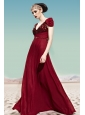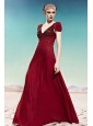 Red Empire V-neck Floor-length Chiffon Beading Prom Dress