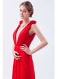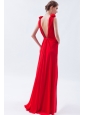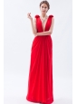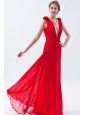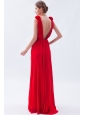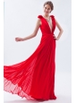 Red Empire V-neck Prom Dress Chiffon Beading Floor-length