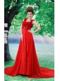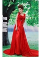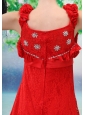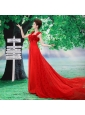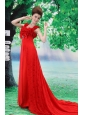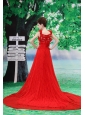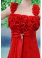 Silhouette: Empire Neckline: Sequare Waist: Fitted Hemline/Train: Court Train Sleeve Length: Sleeveless Embellishment: Beading and Hand Made Flowers Back Detail: Zipper-up Fully Lined: Yes Built-In Bra: Yes Fabric: Lace Shown Color: Red(Color & Style representation may vary by monitor.) Occasion: Prom, Formal Evening, Graduation, Celebrity, Military Ball Season: Spring, Summer, Fall, Winter