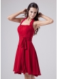 Red Halter Chiffon Knee-length A-Line Prom Dress With Knee-length