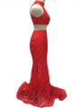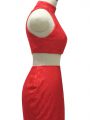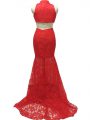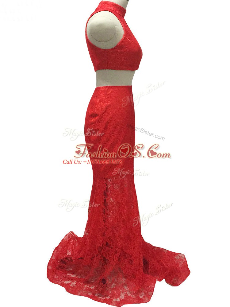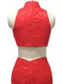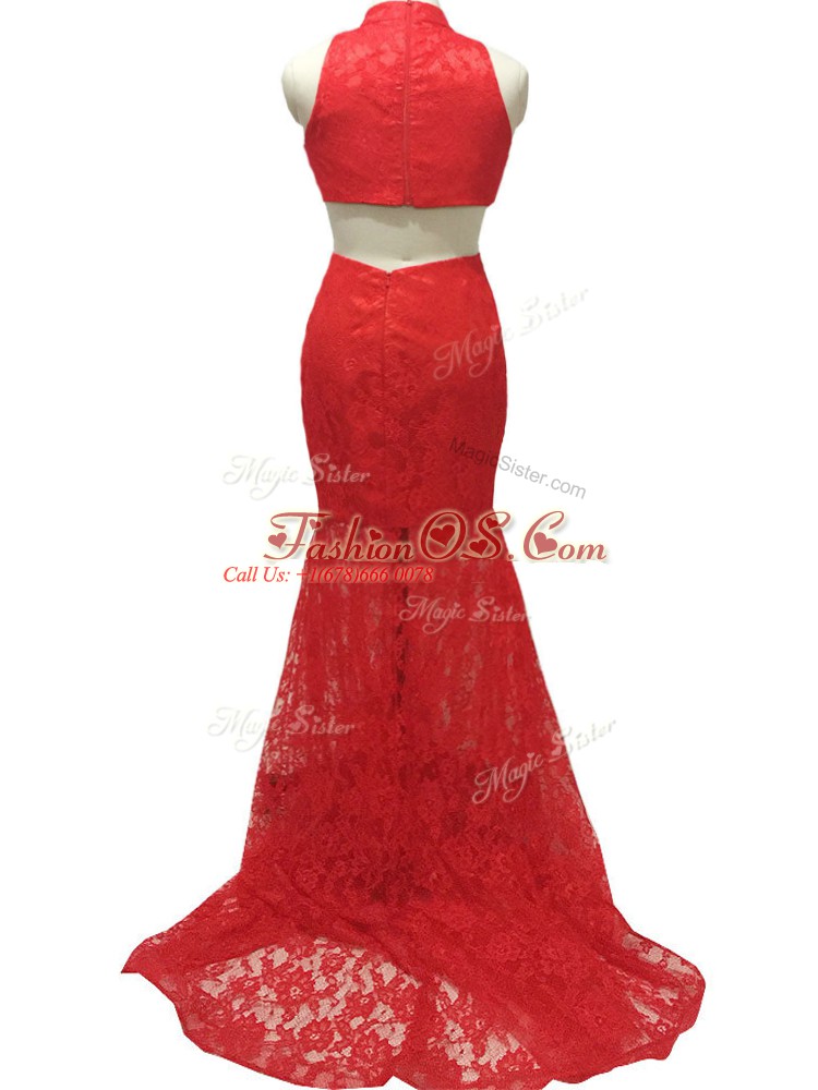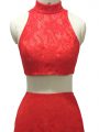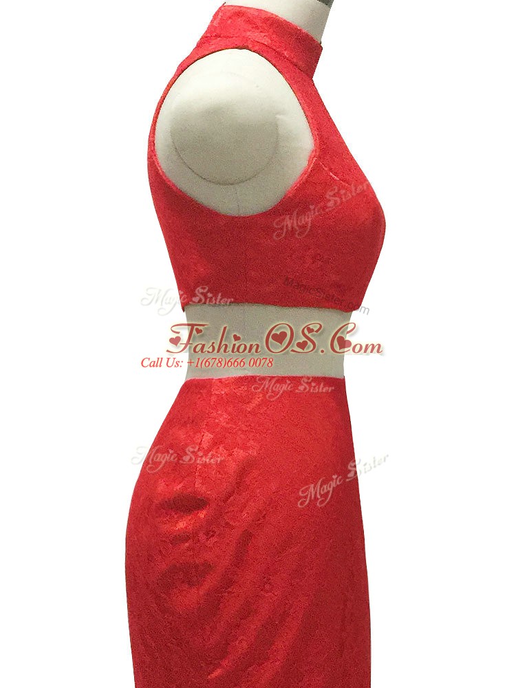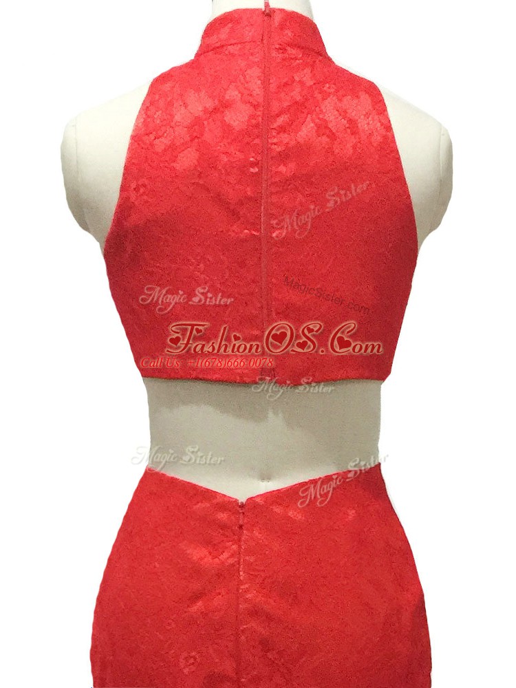 Red Halter Top Neckline Lace Party Dress Sleeveless Zipper