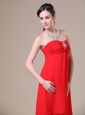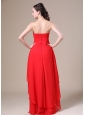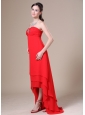 Red High-low Ruched Decorate Bust For 2013 Prom Dress With Beading