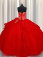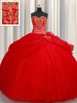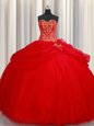 Red Lace Up 15 Quinceanera Dress Beading and Pick Ups Sleeveless Floor Length