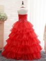 Red Lace Up Halter Top Beading and Ruffled Layers Little Girls Pageant Gowns Organza Sleeveless