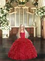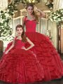 Red Lace Up Quinceanera Dresses Ruffles Sleeveless Floor Length