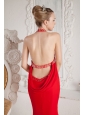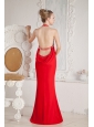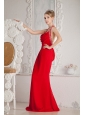 Red Mermaid Halter Ruch and Beading Prom Dress Floor-length Chiffon