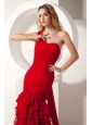 Home >  Prom Dresses >  New Arrivals > Red Mermaid Watteau Ruffles Prom Dress One Shoulder Train Chiffon