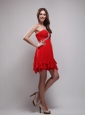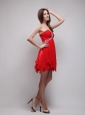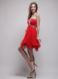 Red Mini-length Cocktail Dress Sweetheart Neck Chiffon Beading