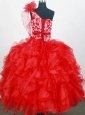 Red One Shoulder Little Girl Pageant Dresses With Hand Made Flowers and Ruffled Layers