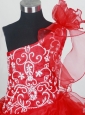 Home >  Special Occasion Dresses >  Little Girl Pageant Dresses > Red One Shoulder Little Girl Pageant Dresses With Hand Made Flowers and Ruffled Layers