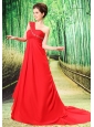 Home >  Prom Dresses >  Best Prom Dresses > Red One Shoulder Prom Dress Appliques and Ruch