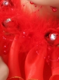 Red Organza Headpiece With Imitation Feather Rhinestones Decorate