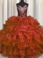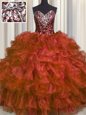 Home >  Quinceanera Dresses >  Pretty Quinceanera Dresses > Red Organza Lace Up Sweet 16 Dress Sleeveless Floor Length Beading and Ruffles