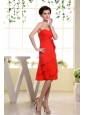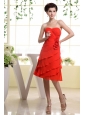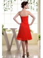 Make an entrance in this elegant and romantic sweetheart neckline bridesmaid dress. The skirt is flowy with soft chiffon to your beautiful legs. This red dress features a lovely sweetheart bodice with delicate ruching covering the bust area and decorated by the hand made flowers on the waist. The skirt is highlighted by the asymmetrical ruching. The zipper up back completes this design and holds the dress in places.