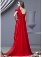 Red Prom Dress With One Shoulder Watteau Train Chiffon For Custom Made