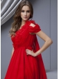 This red prom dress is so exquisite that will make you the most popular one. It features one shoulder with the ruching all over the bodice and hand made flowers on the shoulder strap and around the waist. The skirt is long and flowing that moves graciously when you walk. Bring it to your home, and you will can not wait to attend the prom.