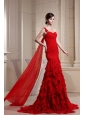 Red Prom Dress With Ruch Decorate Bodice and Ruffles