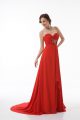 Red Prom Gown Sweetheart Sleeveless Brush Train Zipper