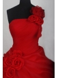 Red Quinceanera Dress with One Shoulder Hand Made Flowers and Organza for Custom Made