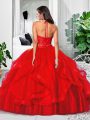 Red Quinceanera Gown Military Ball and Sweet 16 and Quinceanera with Lace and Ruffles Halter Top Sleeveless Zipper
