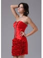 This red short prom dress is sassy and fashionable. It features a sweetheart neckline and a row of sparkling beadings on the ruched bodice while the mini skirt composes of delicate rolling flowers that adds more interests. The hidden zipper up back make the dress easily on and off. This stunning mini-lengh dress will surely turn head.