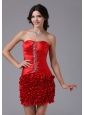 Red Ruched Bodice and Beading For 2013 Cocktail Dress In Beverly Hills California Mini-length Taffeta