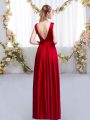Red Scoop Neckline Beading and Appliques Vestidos de Damas Sleeveless Backless