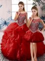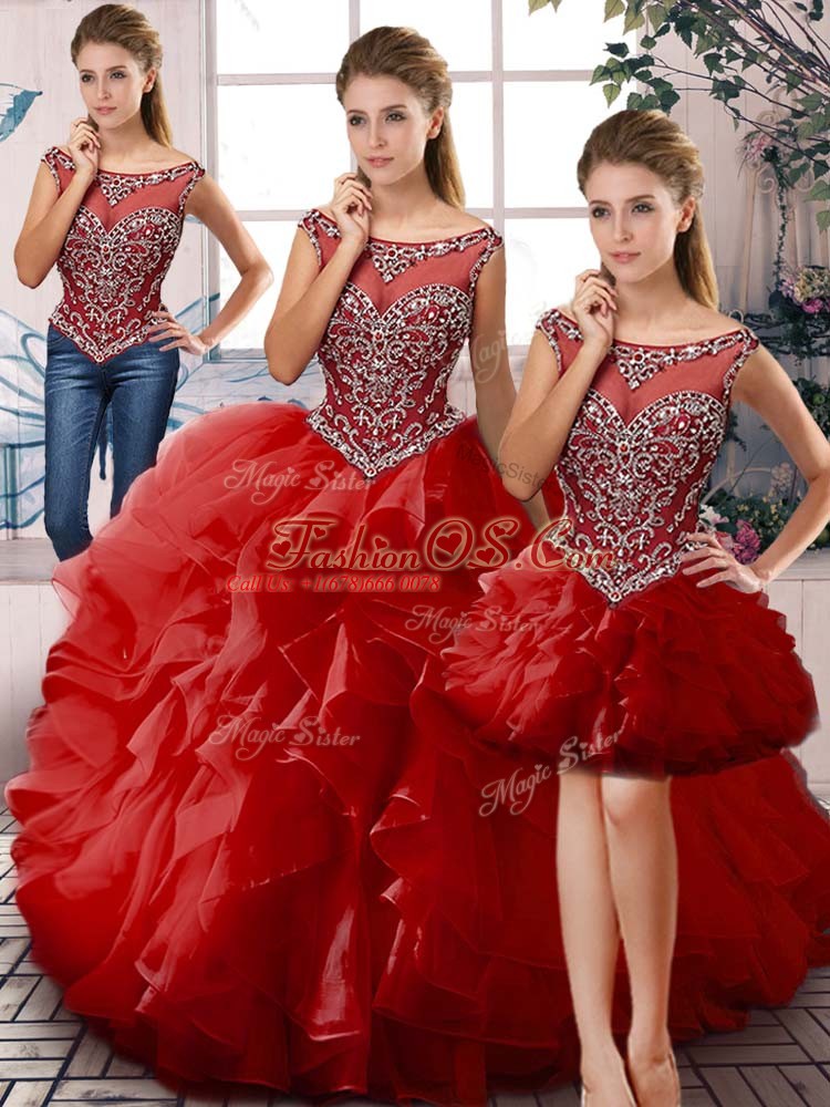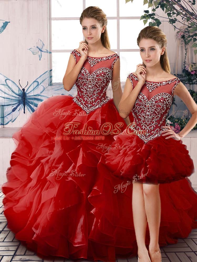Home >  Quinceanera Dresses >  Detachable Quinceanera Skirts > Red Scoop Neckline Beading and Ruffles Quinceanera Dresses Sleeveless Lace Up