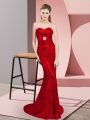 Red Sequined Lace Up Sweetheart Sleeveless Sweep Train Belt