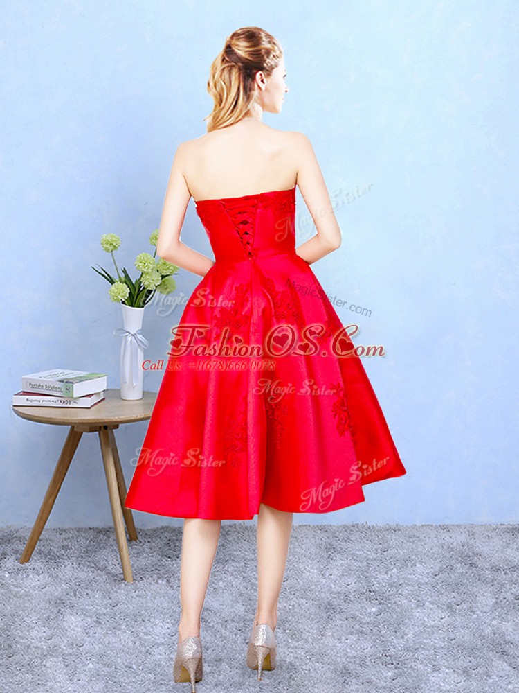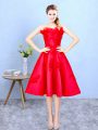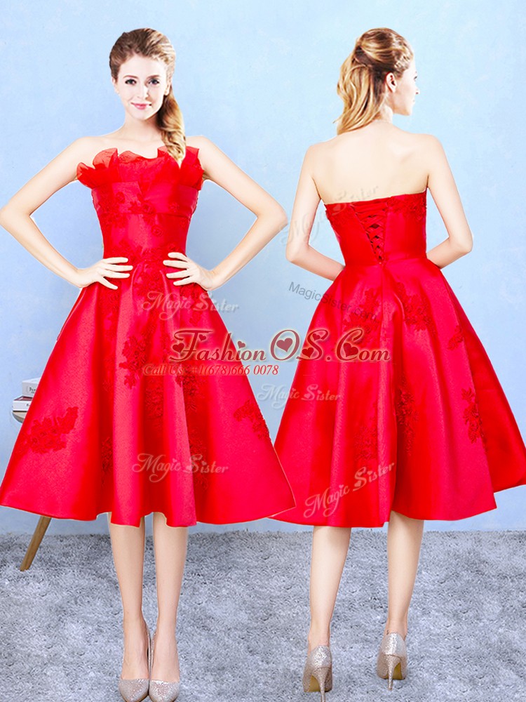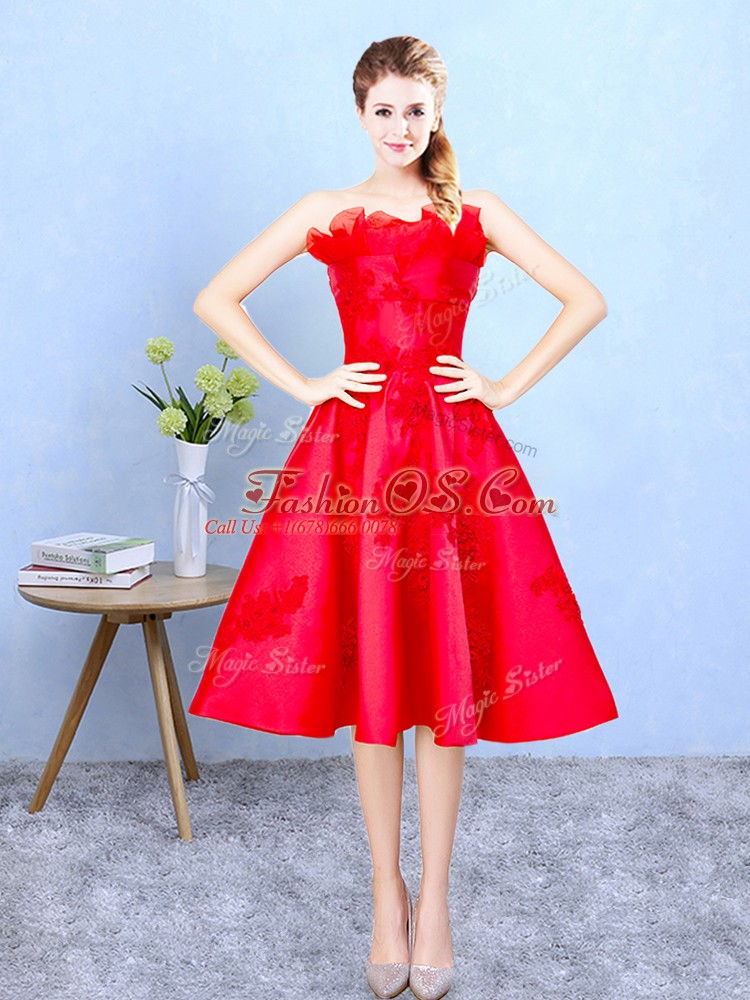 Red Sleeveless Appliques and Ruffles Knee Length Quinceanera Court of Honor Dress