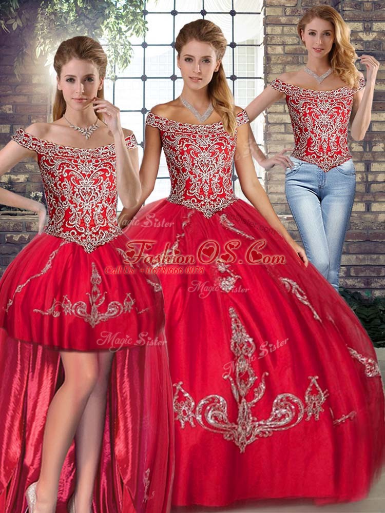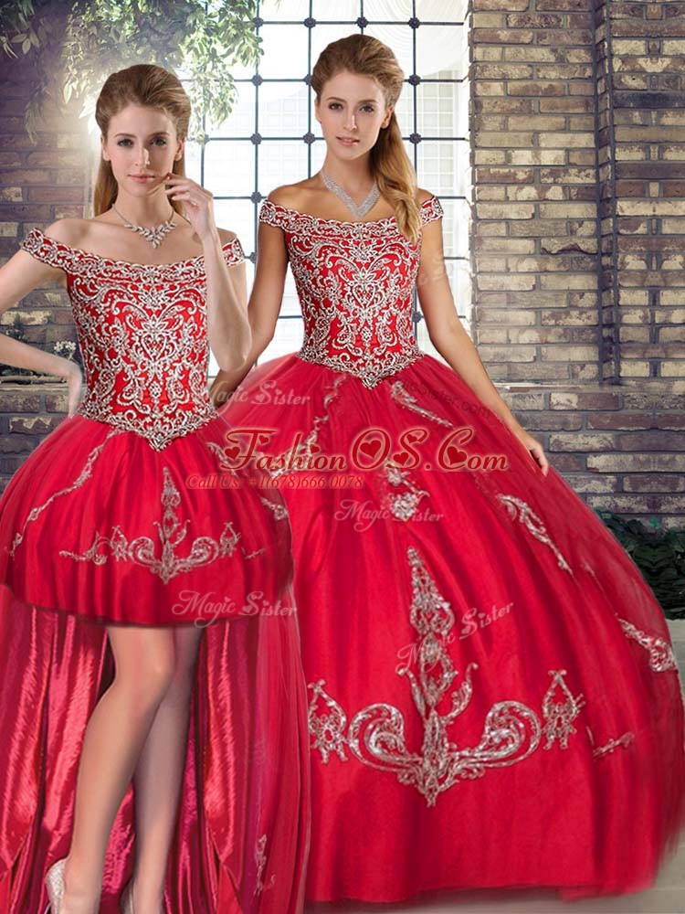 Home >  Quinceanera Dresses >  Detachable Quinceanera Skirts > Red Sleeveless Beading and Embroidery Floor Length 15 Quinceanera Dress
