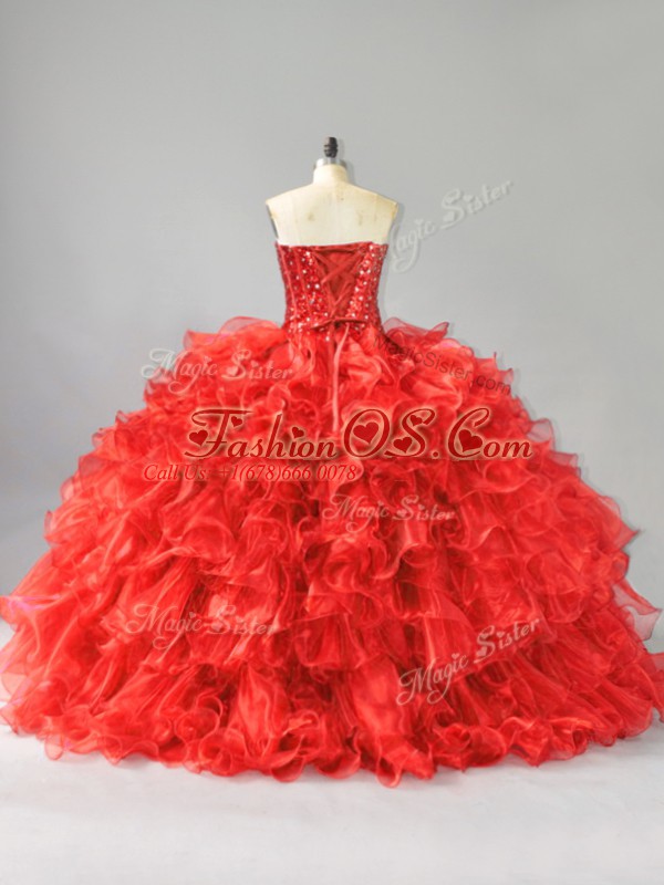 Red Sleeveless Beading and Ruffles and Sequins Floor Length Sweet 16 Dress