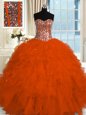 Home >  Quinceanera Dresses >  Fashionable Quinceanera Dresses > Red Sleeveless Beading and Ruffles Floor Length Sweet 16 Quinceanera Dress