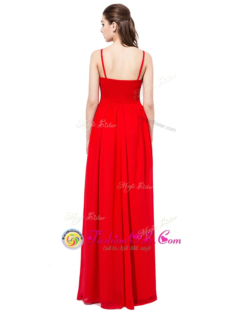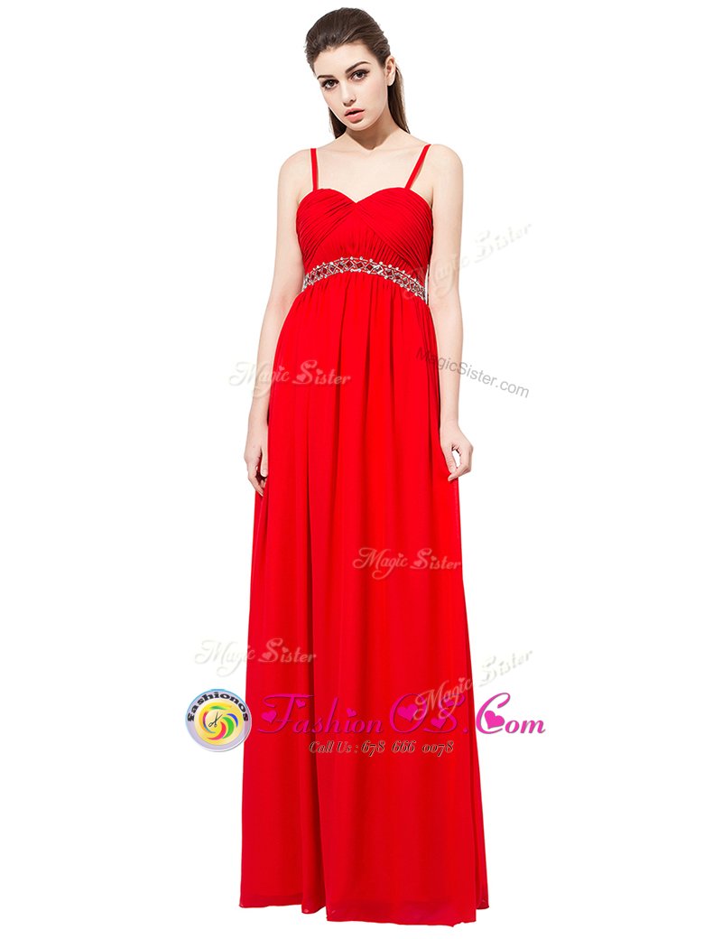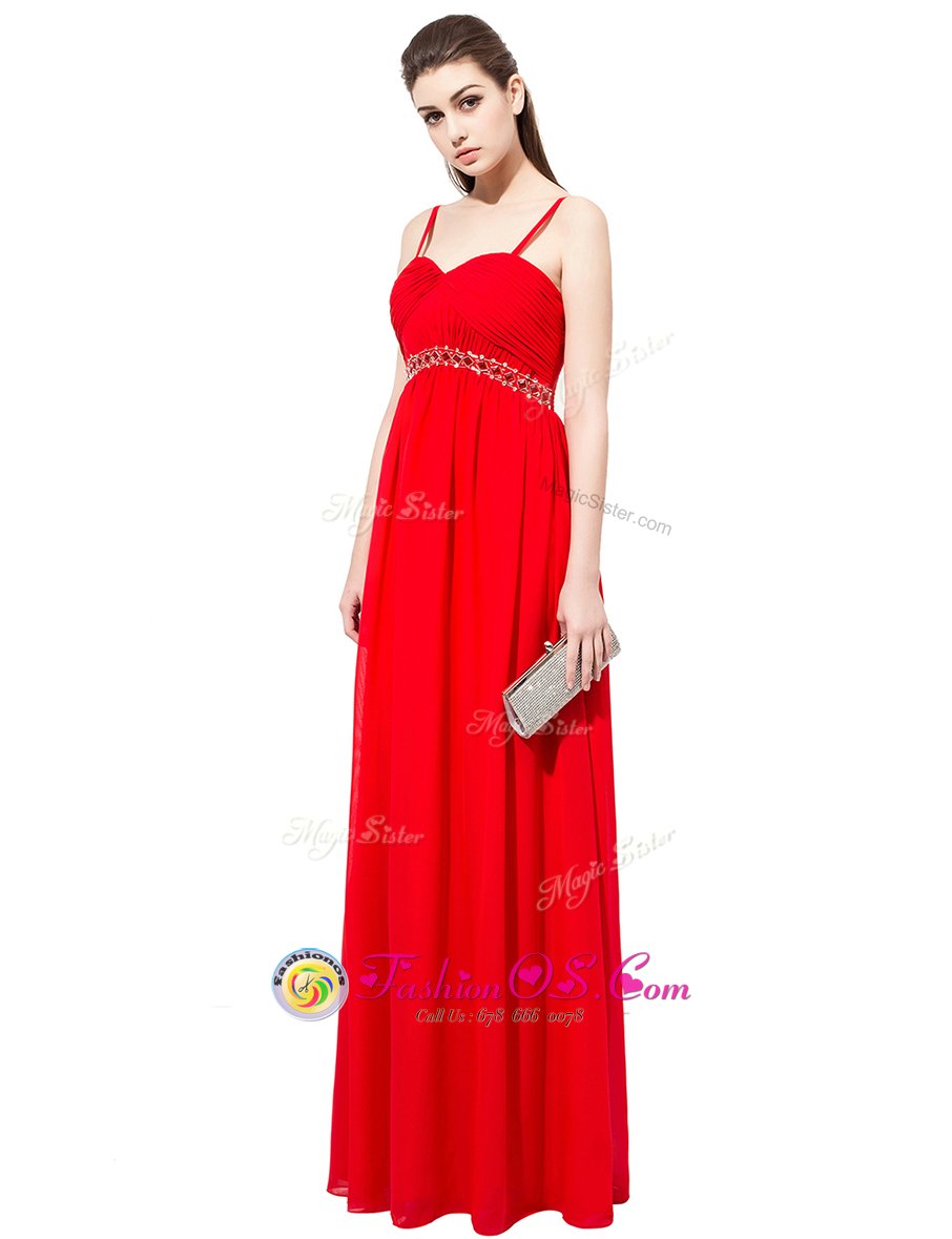 Red Sleeveless Beading Floor Length Homecoming Gowns