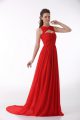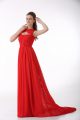 Red Sleeveless Brush Train Ruching Prom Evening Gown