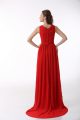 Home >  Prom Dresses >  Modest Prom Dresses > Red Sleeveless Brush Train Ruching Prom Evening Gown