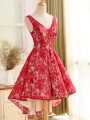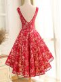 Red Sleeveless High Low Lace and Appliques Backless Prom Evening Gown