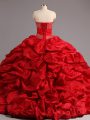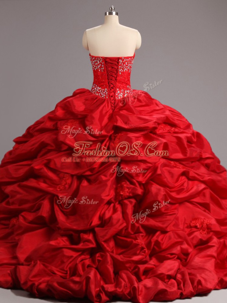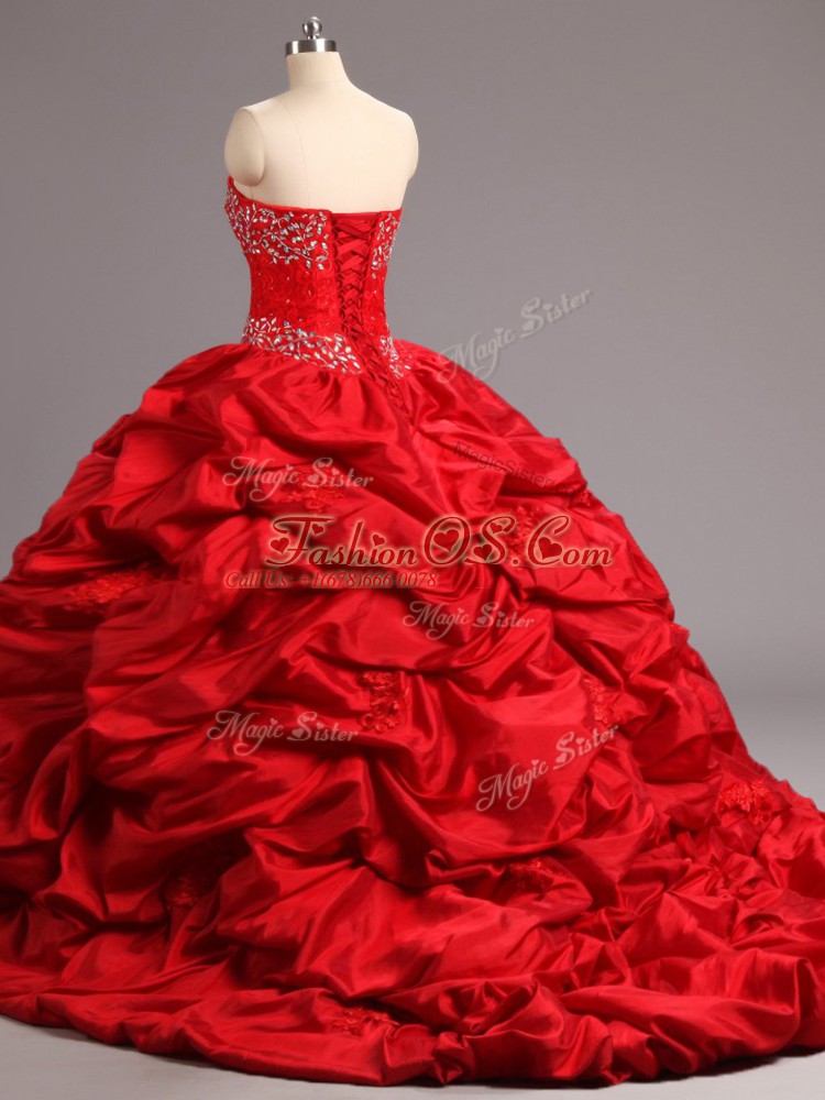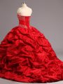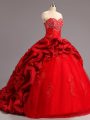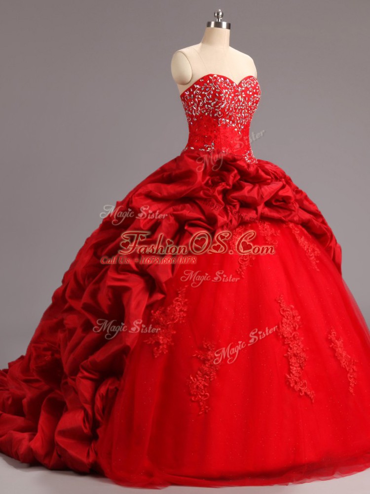 Red Sleeveless Taffeta and Tulle Court Train Lace Up Sweet 16 Dresses for Military Ball and Sweet 16 and Quinceanera