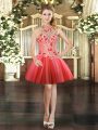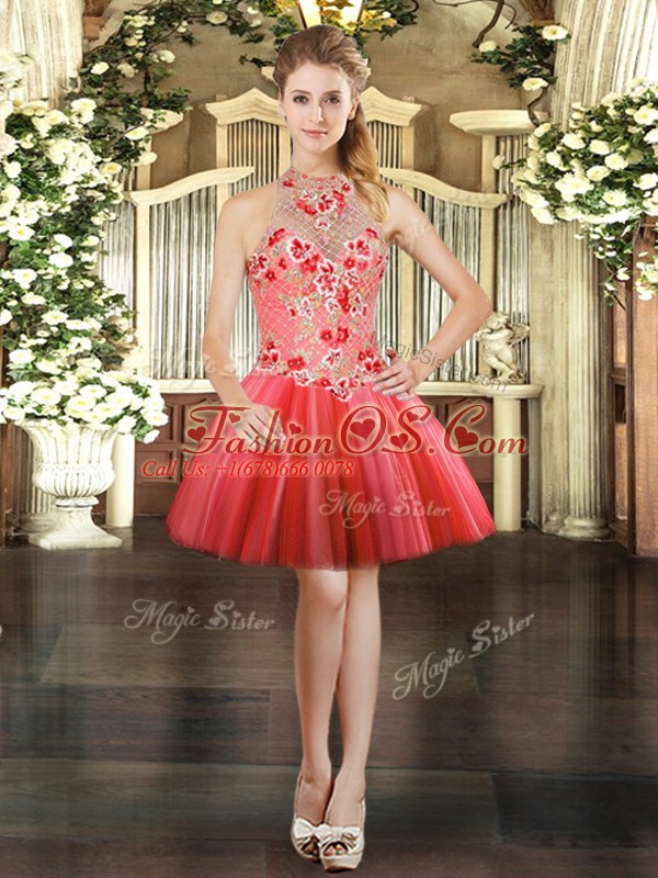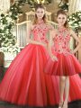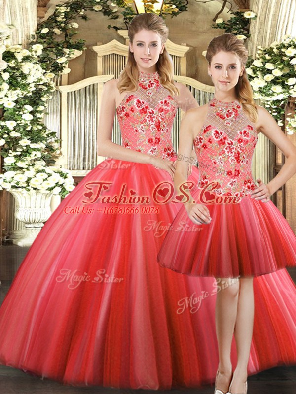 Red Sleeveless Tulle Lace Up Quinceanera Dress for Sweet 16 and Quinceanera
