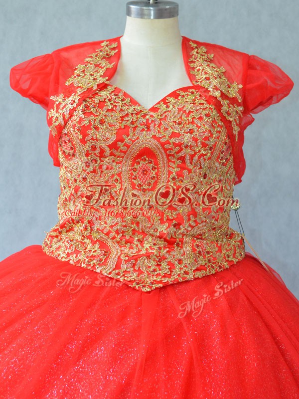 Red Sweetheart Lace Up Beading and Appliques Quinceanera Dress Court Train Sleeveless