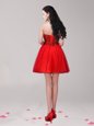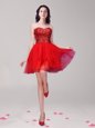 Red Tulle Lace Up Evening Dress Sleeveless Mini Length Beading