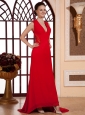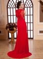 Home >  Prom Dresses >  Modest Prom Dresses > Red V-neck For Prom Dress With Lace and Chiffon