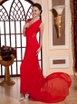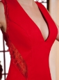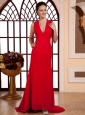 Red V-neck For Prom Dress With Lace and Chiffon
