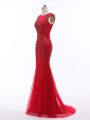 Red Zipper Scoop Beading Evening Wear Tulle Sleeveless Brush Train