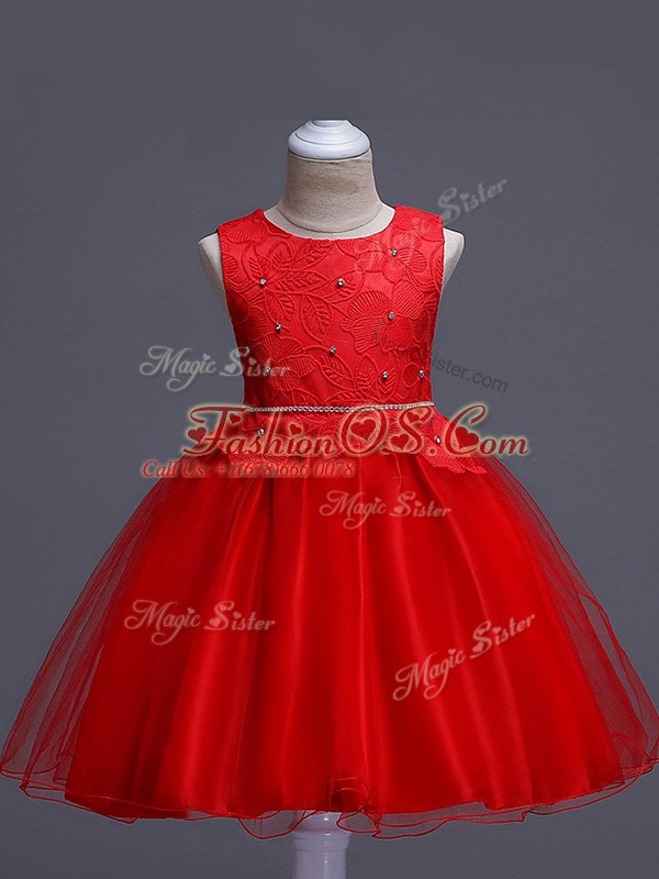 Red Zipper Scoop Lace Little Girl Pageant Dress Organza Sleeveless