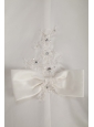 You will be the most beautiful bride in this wonderful wedding dress. The strapless dress features a beaded bodice. The special design of the skirt makes the dress unique. The skirt is decorated with beadings, appliques and ruffles on the hem. The bows and particular fabric with a lot of holes on the back of the skirt add interest to the dress.