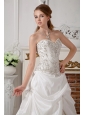 Every girl wants to have a prefect wedding ceremony in her lifetime. Wedding dresses have been the most important part of it. With this dress, we are sure you will become one of the most beautiful brides all around the world. This kind of wedding dress features strapless and sweetheart design, embroidery and beaded bodice with ruched bottom in ball gown silhouette, floor length. The ball gown style is perfect for you envisioning a fairy tale wedding. Believe me, you will become the most pleasing, sweet and noble bride.